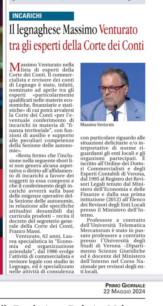 Massimo Venturato tra gli esperti della Corte dei Conti